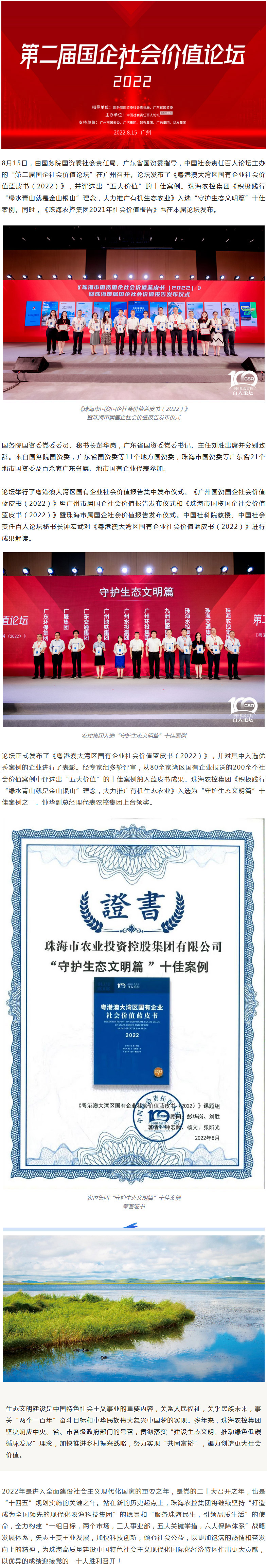 珠海农控集团入选《粤港澳大湾区国企社会价值蓝皮书》“守护生态文明篇”十佳案例