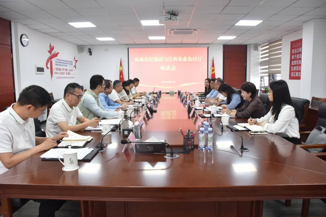4月17日,江西省农业农村厅农业技术推广中心党委书记郑敏携南昌农业发展集团有限公司一行到珠海农控集团参观座谈。南昌农发集团党委副书记、总经理黄志刚,珠海农控集团副总经理钟华出席座谈会。