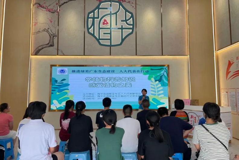 为深入学习贯彻习近平生态文明思想,加快推进绿美广东生态建设,近期,在市园林绿化和市容环境管理中心的指导下,粤华园林公司积极响应,与梅华街道敬业社区人大代表联络站联合组织辖区青少年开展“社区青少年植物科普研学”活动,用实际行动倡导植绿护绿。