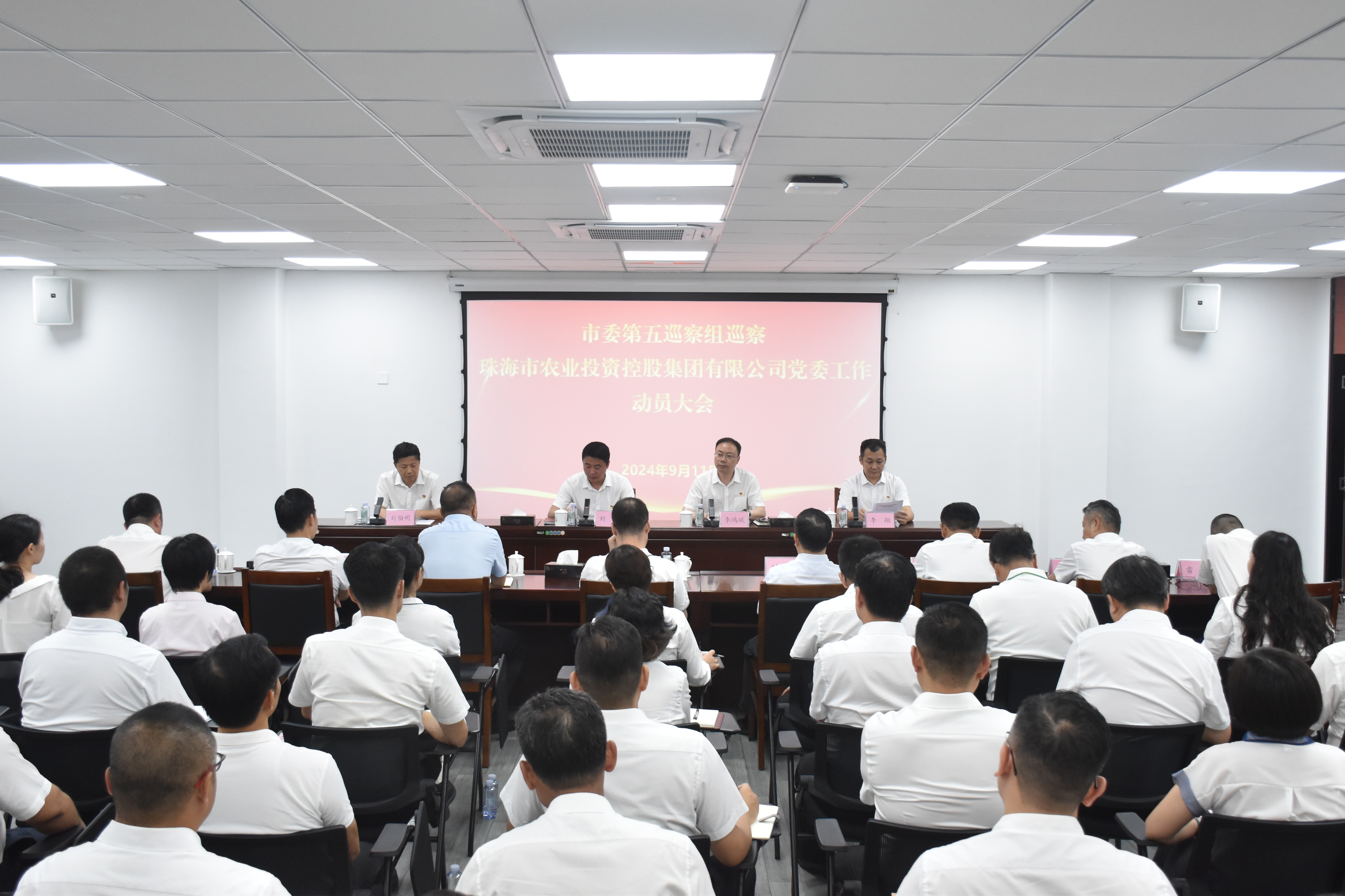 根据市委巡察工作统一部署,2024年9月11日,市委第五巡察组巡察网上现金买球(中国)有限公司官网(以下简称“农控集团”)党委工作动员会召开。会前,市委第五巡察组组长刘震主持召开与农控集团领导班子的见面沟通会,通报了巡察有关工作安排。动员会上,刘震作了动员讲话,对做好巡察工作提出要求。农控集团党委书记、董事长李鸿斌主持会议并作表态发言。