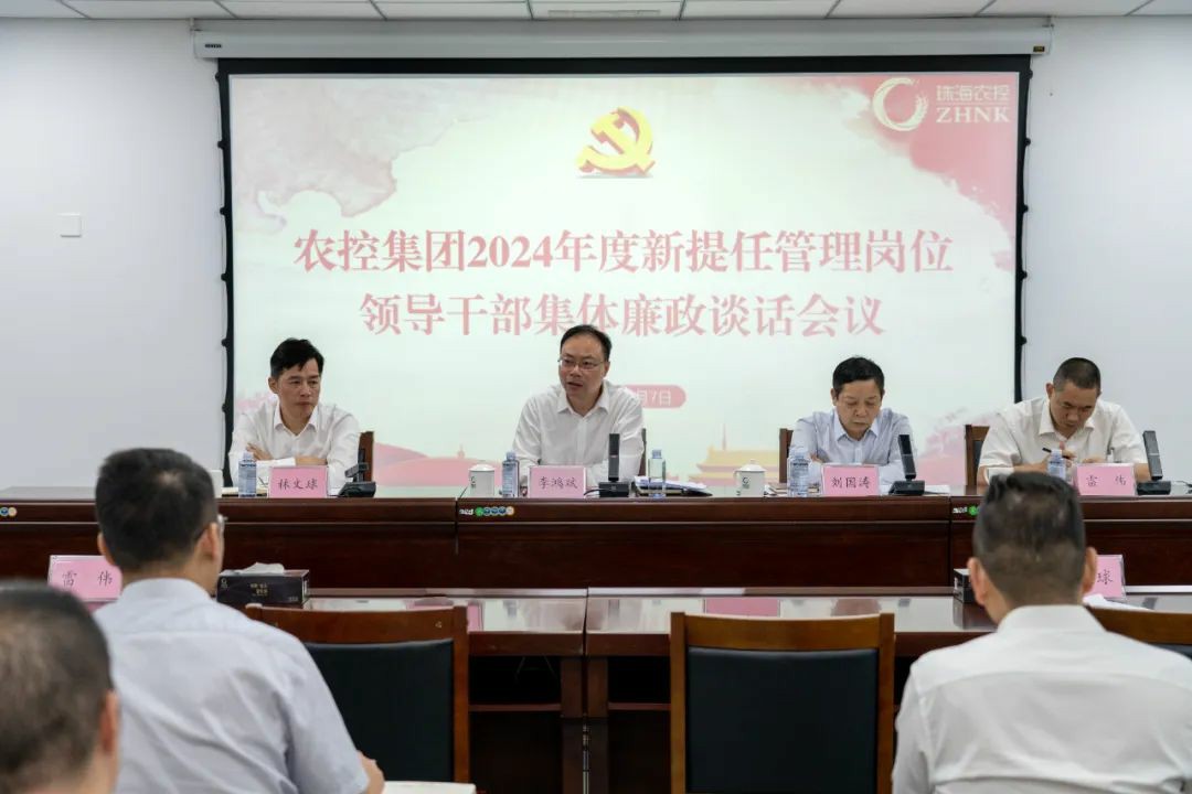 11月7日下午,珠海农控集团召开2024年度新提任管理岗位领导干部集体廉政谈话会议。集团新提任领导干部、相关部门负责人等30余人参加会议。集团党委书记、董事长李鸿斌出席会议并讲话,党委副书记刘国涛主持会议。